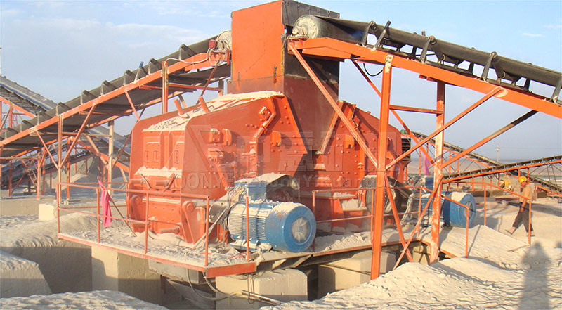 現(xiàn)場(chǎng)采用三級(jí)破碎的設(shè)計(jì)流程,全套設(shè)備采用鄭州中意砂石生產(chǎn)設(shè)備。即:給料機(jī)、顎式破碎機(jī)、 反擊破碎機(jī)、高效沖擊式制砂機(jī)等。