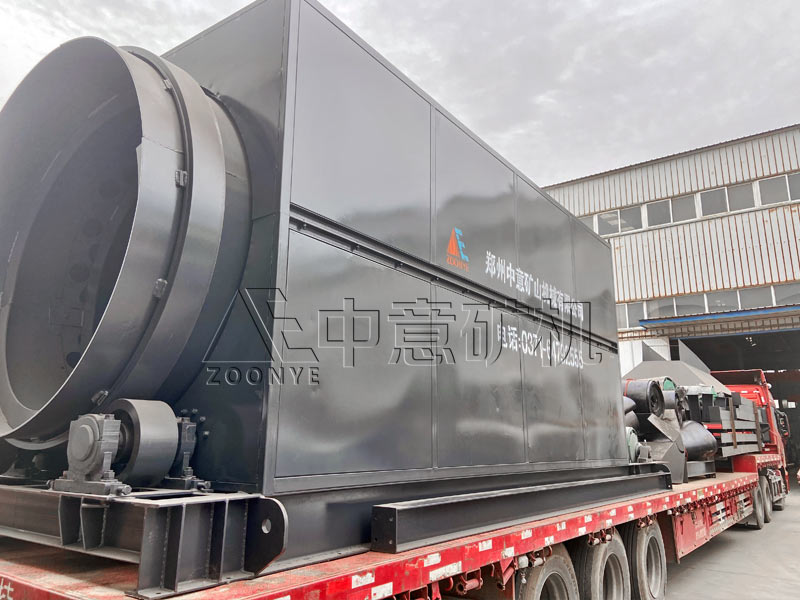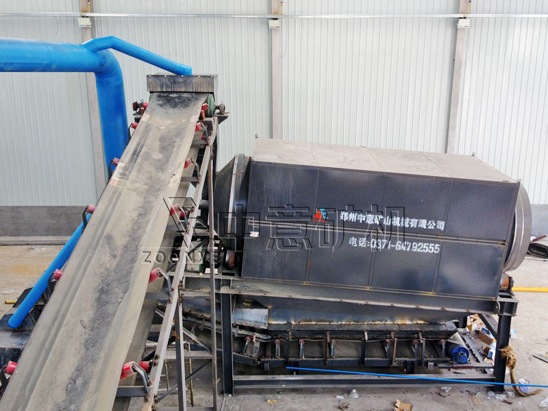 2、初級(jí)篩分:經(jīng)破碎除鐵后的骨料被傳輸至滾筒篩設(shè)備處,加裝風(fēng)機(jī)的滾筒篩可以干凈地將物料中的細(xì)小紙屑、塑料、木渣等分離出來(lái),再生骨料能夠加工回收利用,輕質(zhì)物能夠重塑加工。
