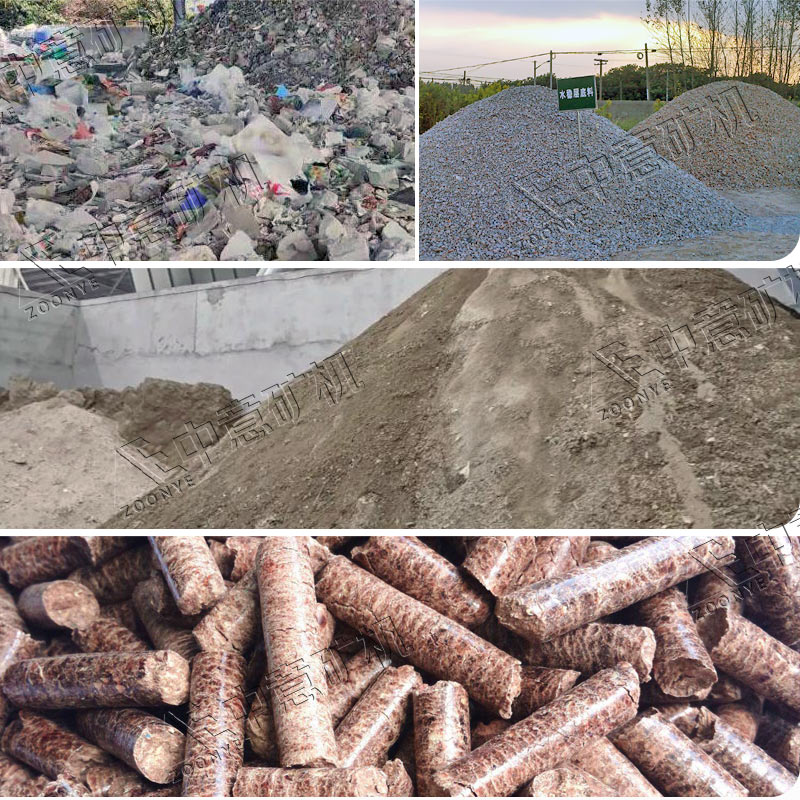 該項目是將成分復雜的裝修裝潢垃圾進行分選處理后,產出不同用途的塑料、木屑、鋼筋和粒徑在31.5mm以下的再生骨料,根據(jù)客戶需要,可配套再加工設備,如制磚機、顆粒機、壓塊機等。該組合生產線每月工作26天,每天工作10小時,成品料產量達到300t/h。